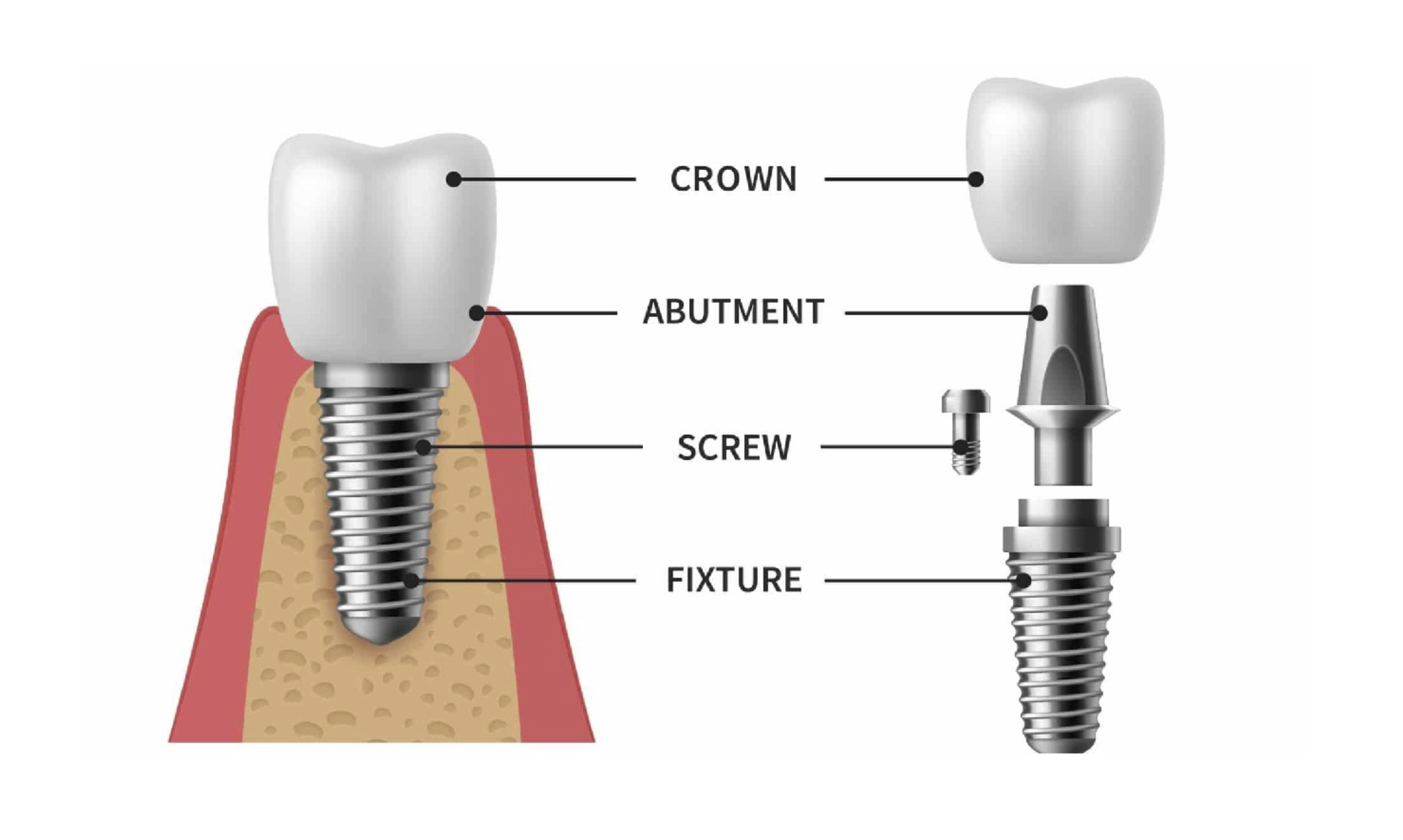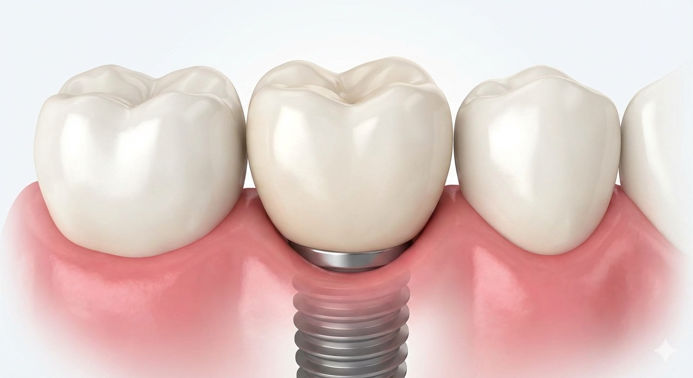 The Implant: A medical-grade titanium screw placed gently into the jawbone (acting as the root).